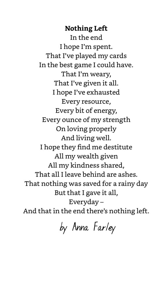 So I share with you here a poem from Shining Hard, one of my favorites maybe that I’ve ever written. Whatever I do in my life, I hope in the end, there is nothing left.