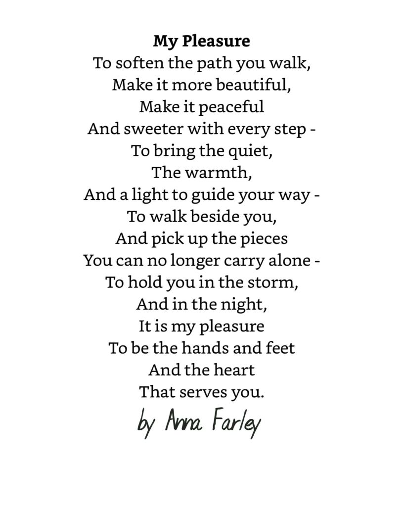 Poem: My Pleasure Posted byannamfarleyJanuary 21, 2025Posted inUncategorizedTags:diary, Faith, Love, Marriage, Passion, Poem, poetry, Relationships, writer, Writing Another poem from my collection called Rhyme & Reason. Share this: Click to share on X (Opens in new window) X Click to share on Facebook (Opens in new window) Facebook Like Loading... Related